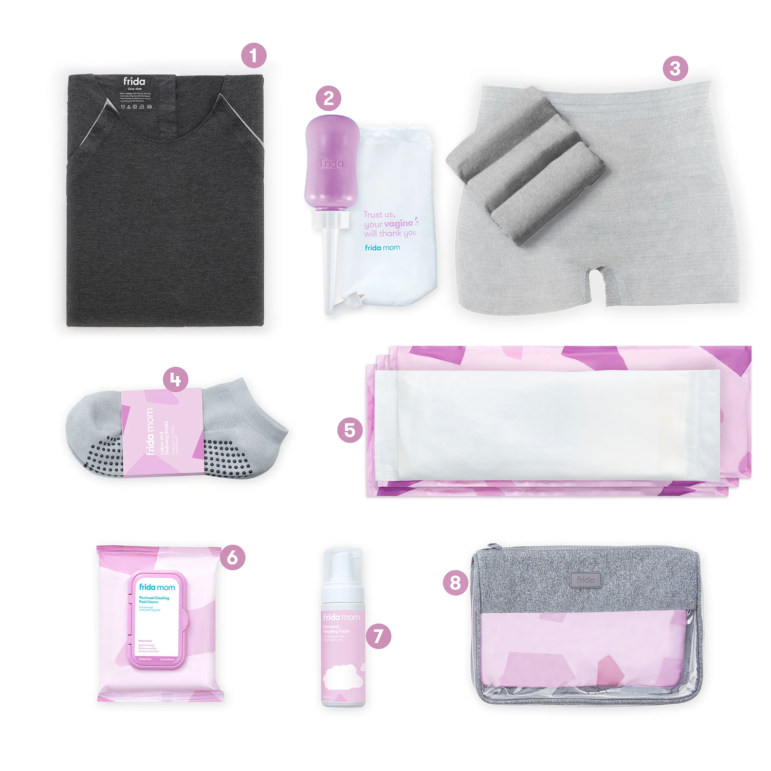 Laissez de côté la liste des choses indispensables à mettre dans votre sac de maternité. Ce kit post-partum tout-en-un vous accompagne depuis la première contraction jusqu'au premier passage aux toilettes après l'accouchement. Tous les essentiels pour l'hôpital, le travail et l'accouchement sont soigneusement conçus et emballés pour être offerts en cadeau de liste de naissance et de baby shower, parfaits pour toutes les futures mamans.